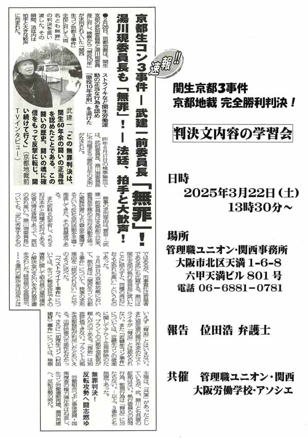 【関西生コン京都3事件・無罪判決学習会の報告(月刊誌コモンズ4月号より)】(写真クリックでPDFファイルが開きます)