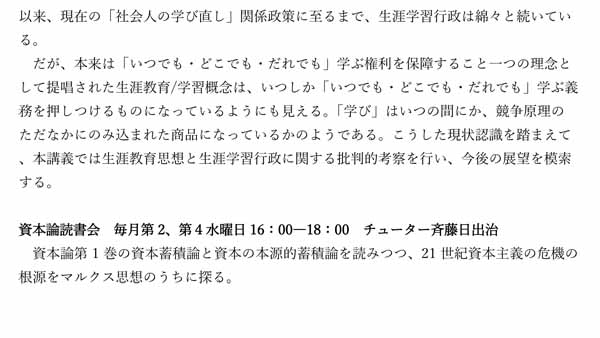 | ■お知らせ 「講義題目 コモンズからポスト資本主義を考える 講師/若森章孝(関西大学名誉教授)」の第4講10月24日は、11月27日(水)に変更いたしました |